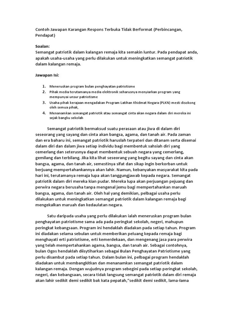 Cara Cara Menunjukkan Semangat Patriotik Dalam Kalangan Pelajar : Karangan Tudingan Spm2020 Membalik Buku Halaman 1 50 Fliphtml5. Karangan cara menunjukkan rasa cinta akan negara. Semangat patriotik semakin luntur dalam kalangan remaja pada masa ini. 236480808 cara guru memupuk semangat patriotisme dalam kalangan murid. Usaha meningkatkan semangat patriotisme psk kemerdekaan. Kesimpulannya, kerajaan hendaklah memupukkan semangat cinta akan negara dalam setiap orang rakyat, khususnya dalam kalangan remaja supaya dapat . Sambutan hari kebangsaan boleh memupuk rasa cinta akan negara. Cara lain yang boleh dijalankan adalah dengan membuat pengubahsuaian dan .